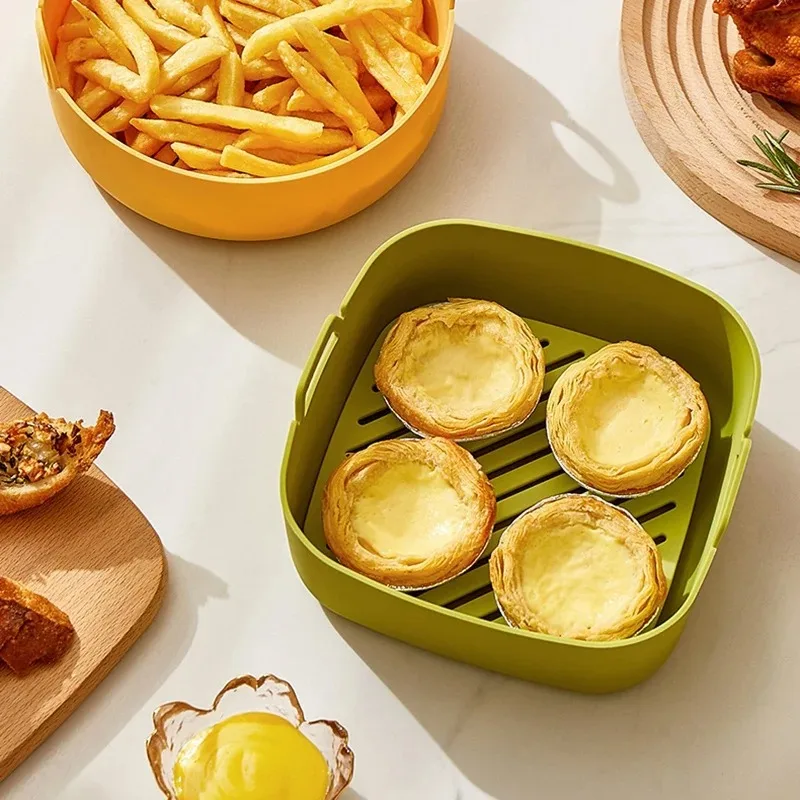 New Air Fryer Grill Pan Silicone Basket Round Silicone Tray For Air Fryer Easy Clean Liner Pizza Plate Mat Air Fryer Accessories